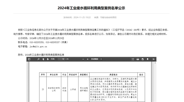 公司上榜工信部工業(yè)廢水循環(huán)利用典型案例名單
